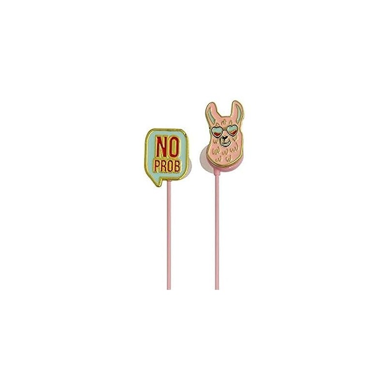 DCI Angled Earbuds: No ProbLlama, In-Ear Headphones, Pink Cord, 3.5mm socket, Smartphone, Laptop, Tablet Compatible