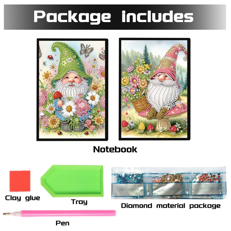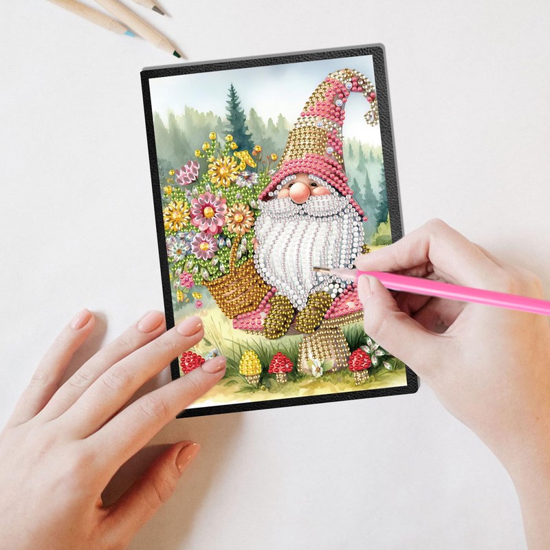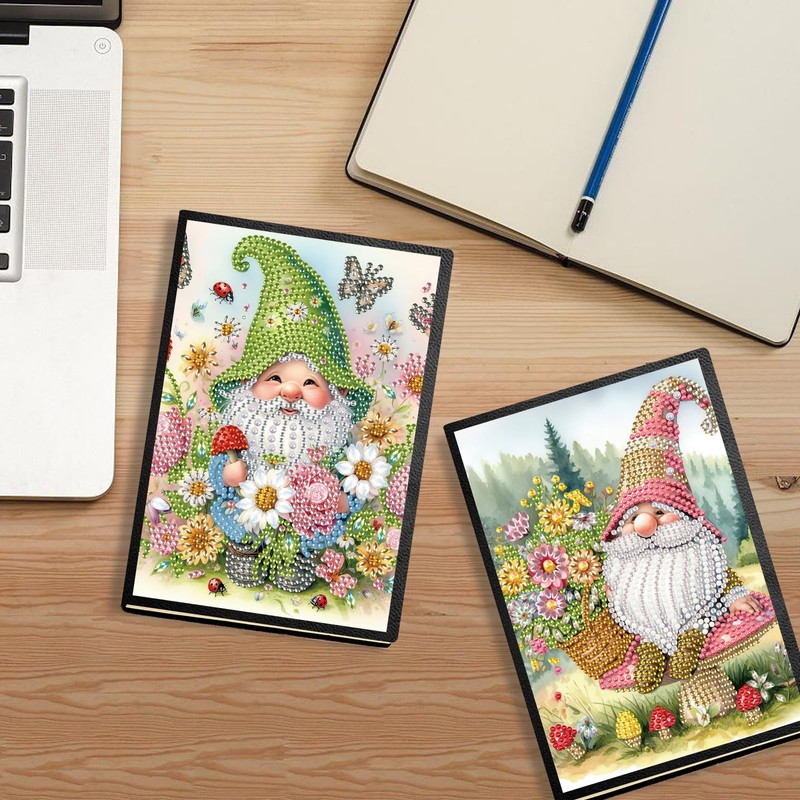 DCIDBEI 5D 2 Pack Diamond Painting Notebook Purpose A5 Blank Diamond Painting Diary Dwarf Diamond Painting Sketchbook Garden Gnome Diamond Painting Practice Book Notepad 50 Sheets Writing Pad Office