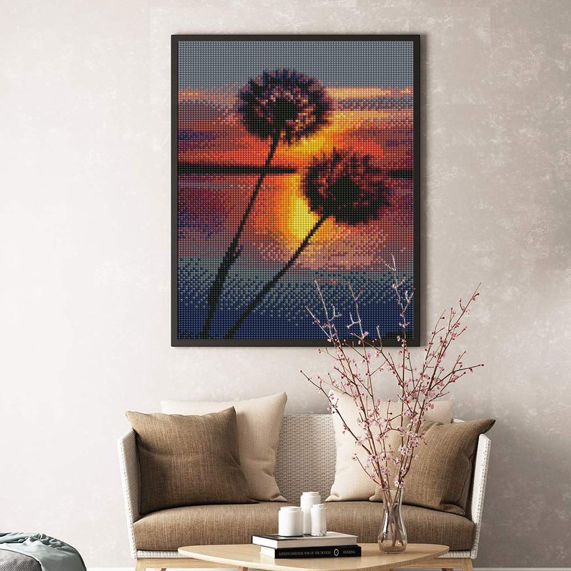 DCIDBEI DIY 5D Square Diamond Painting by Numbers Set, Square Diamond Painting Kits Dandelion Sunset Rhinestone Embroidery Cross Stitch for Adults Canvas Wall Decoration 30 x 40 cm