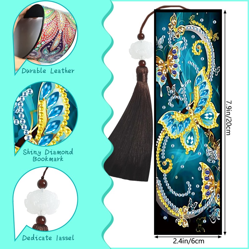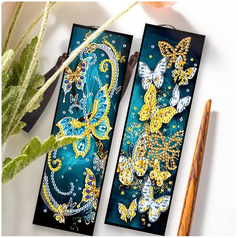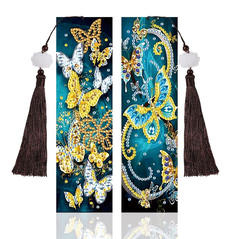 - DIY 5D diamond painting Christmas: 5D diamond painting set bookmark perfectly combines bookmark and diamond embroidery. The magic round diamonds that do not fade, more colourful, brighter and more realistic than resin diamonds. The inset stone allows a shiny shine to reflect under the light. The delicate decoration with blue and gold butterfly motif can mark your reading progress and make your reading time more pleasant and comfortable.