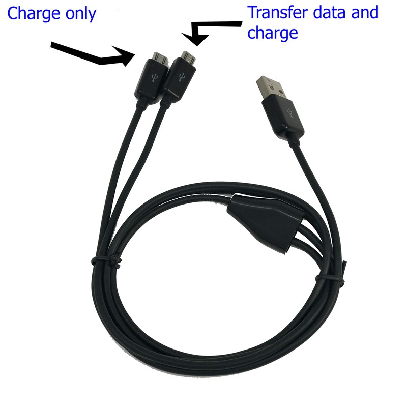 * Y-Split Dual USB connector cable with one USB port performs charging only and the other USB port performs both charging and transferring data