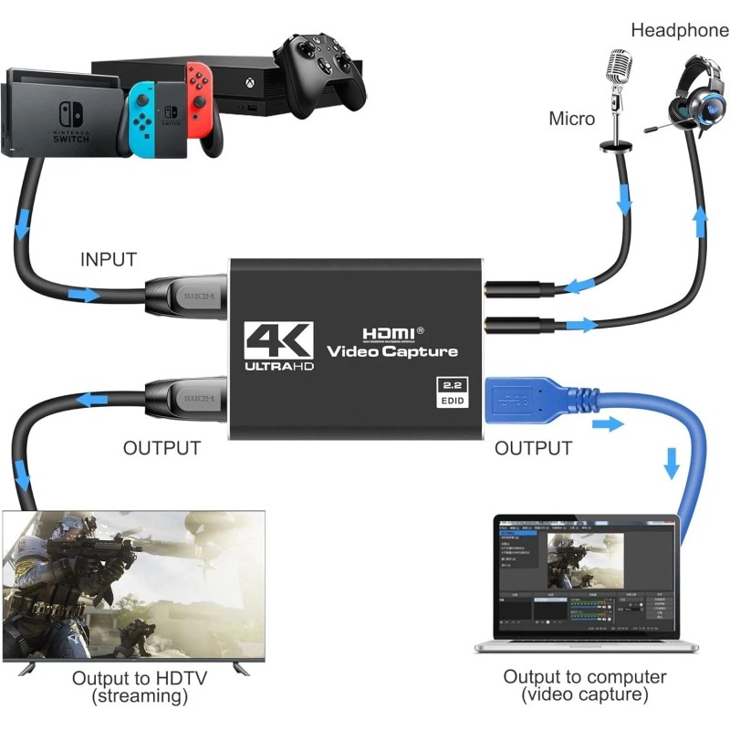 4K HDMI Capture Card for Streaming, Full HD 1080P 60FPS USB Cam Link Game Audio Video Capture Card Nintendo Switch/PS5/3ds/Xbox/PS4