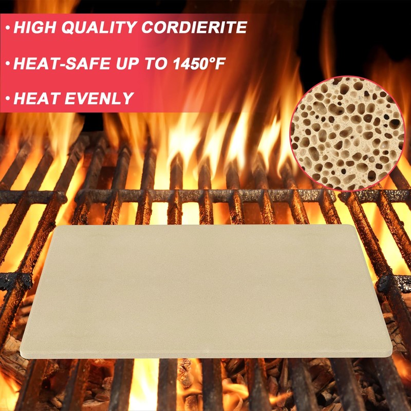 - Professional-Grade 22" x 14" Rectangular Pizza Stone: Achieve crispy, restaurant-quality crusts every time! Our thick, durable natural cordierite stone evenly distributes heat for perfectly baked pizzas, flatbreads, or cookies in pizza ovens, conventional ovens, gas and charcoal grills, and traditional outdoor grills.