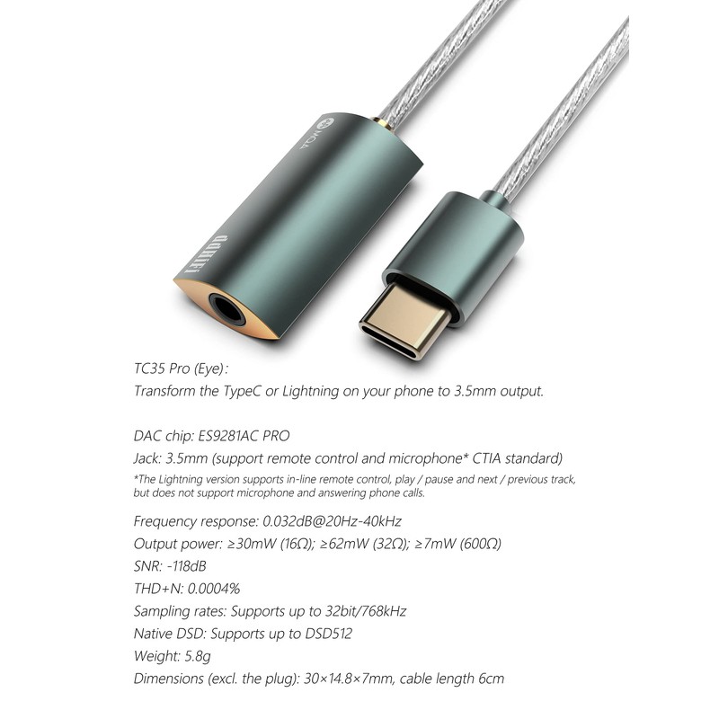 - New Design 2021 :The TC44B that has been on the market isa DAC & AMP dongle with only balanced outputs. This 'Eye' has been extended on the original color scheme, strengthened the golden joints at the end, and eliminated the screws. At the same time, the connecting cable* has been adjusted to be softer.