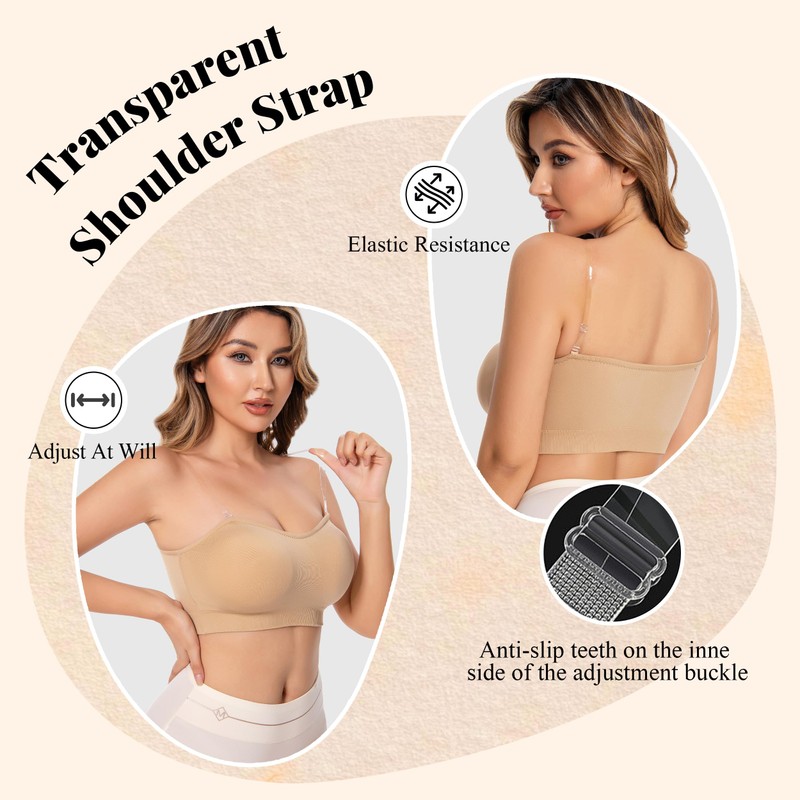 - Perfect for any occasion: This bandeau bra pairs effortlessly with tank tops, blouses, dresses, and even formal gowns. Plus, it includes adjustable clear straps (removable for versatile styling) so you can wear it any way you like!