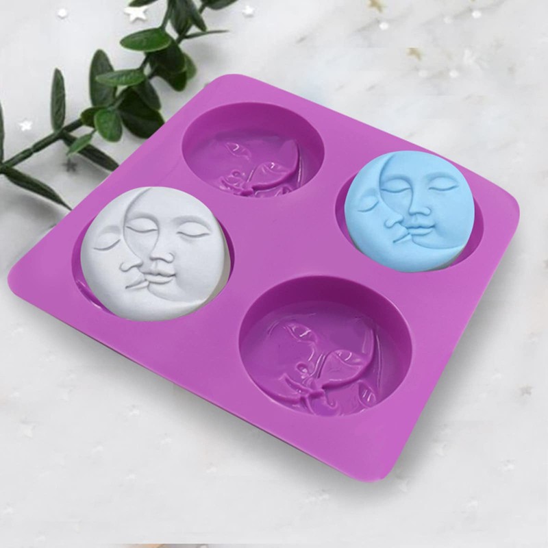 DD-life 4 Pcs 4 Cavity Sun & Moon Face Soap Molds,Sun & Moon Silicone Soap Mo...