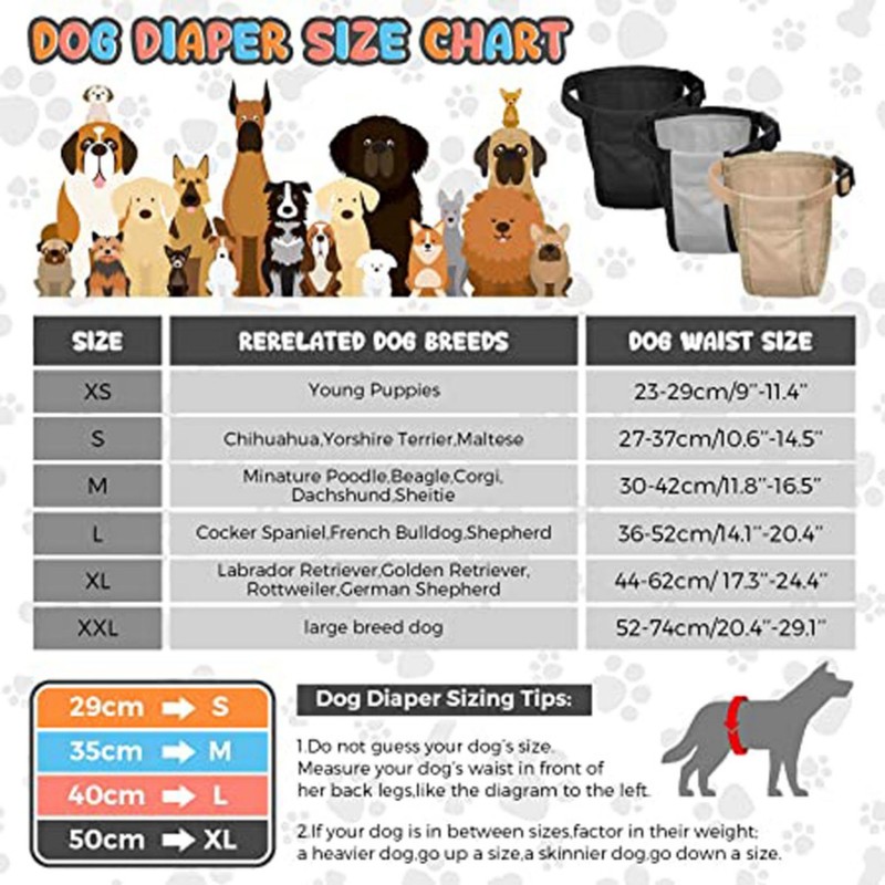 - 【Comfortable Reusable Dog Diapers】the design of the buckle is simple and comfortable and the tightness can be adjusted, Adjustable and strong buckle can fit a larger range of waist length and weight, so there is no feeling of restriction, and the tail or legs of your dog can move as you like thanks to the elastic seams and tail hole design.