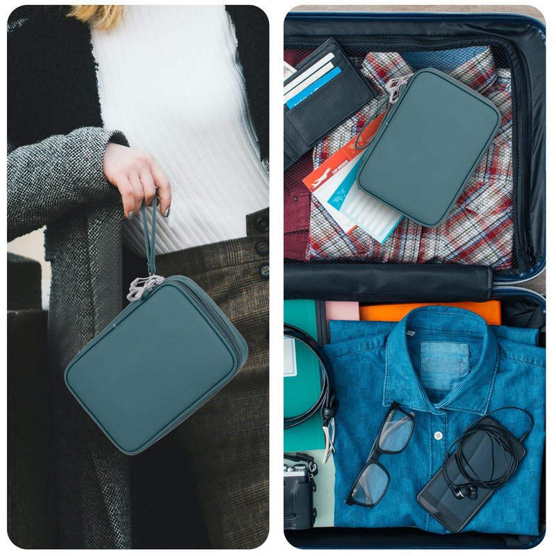 DDgro Electronics Travel Organizer Case for Cables/Cords/Chargers/Tech Essentials, Double Layers (Aqua Blue, PU-Large)