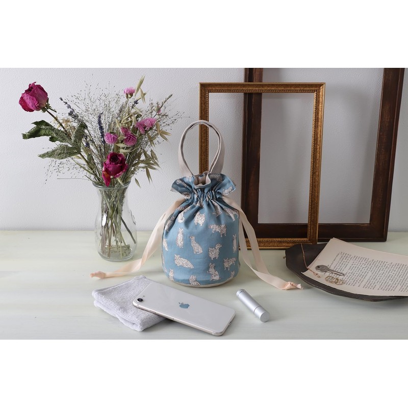 DDintex FLORET LONDON Drawstring Pouch, Miao, Blue, φ4.7 x 7.1 inches (12 x 18 cm) [Using Liberty Print]
