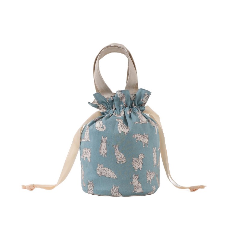 DDintex FLORET LONDON Drawstring Pouch, Miao, Blue, φ4.7 x 7.1 inches (12 x 1...