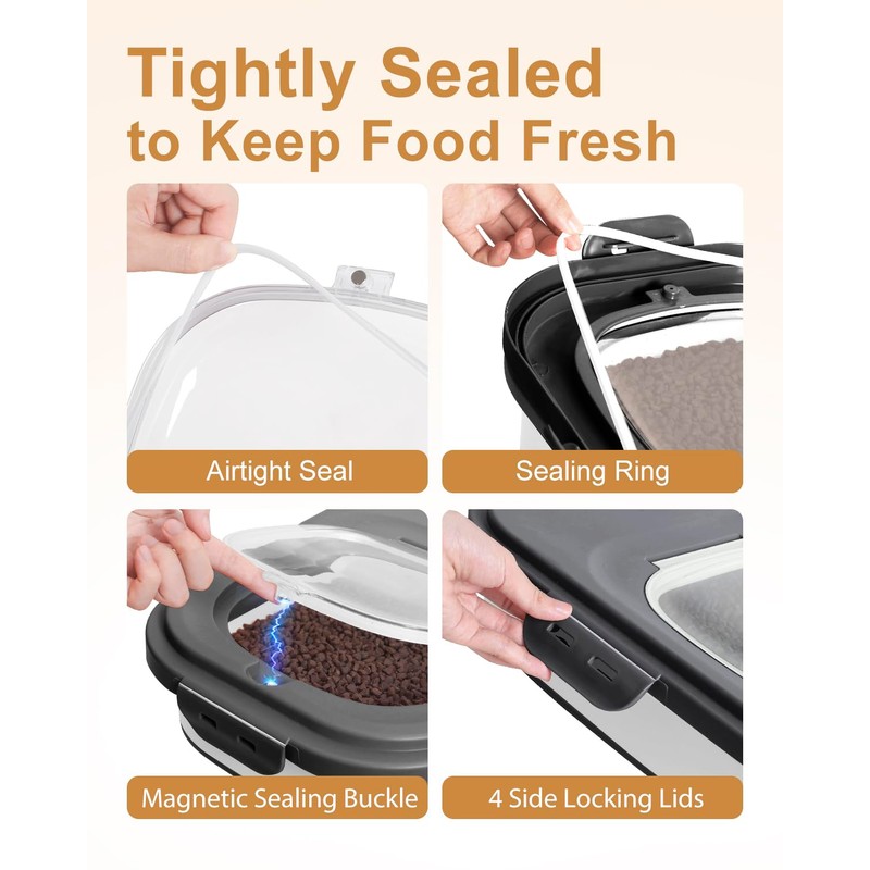 • Superior Sealing for Freshness: Our rice storage container is designed with a double airtight seal and 4 side locking lids, ensures your pet's food stays fresh longer, free from moisture