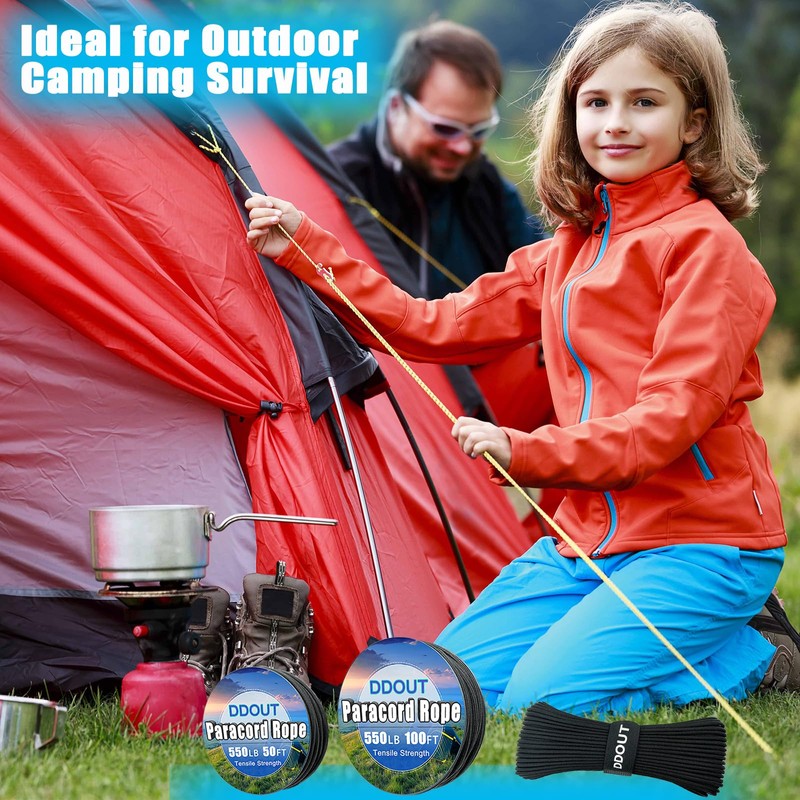 DDOUT 550 Paracord 100ft, 4mm Thin Tactical Parachute Cord for Climbing, Camping, Tent, Clothsline, Survival Utility Rope, Black