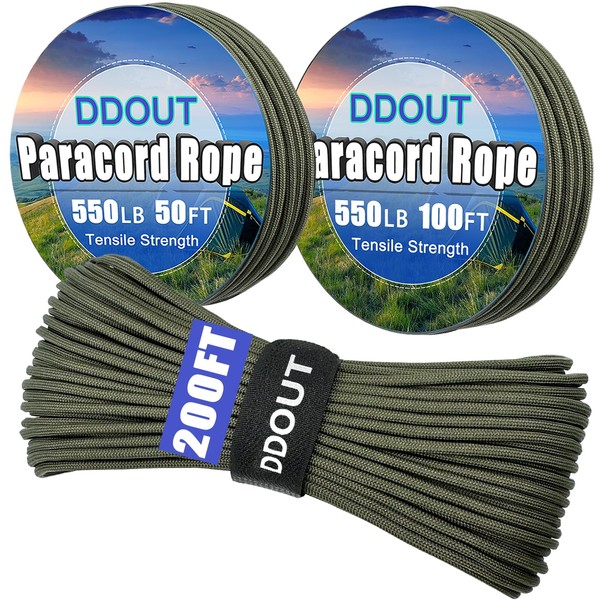 DDOUT 550 Paracord Rope 50ft, 4mm Thin Tactical Parachute Cord for Climbing, Camping, Tent, Clothsline, Survival Utility Rope, Army Green