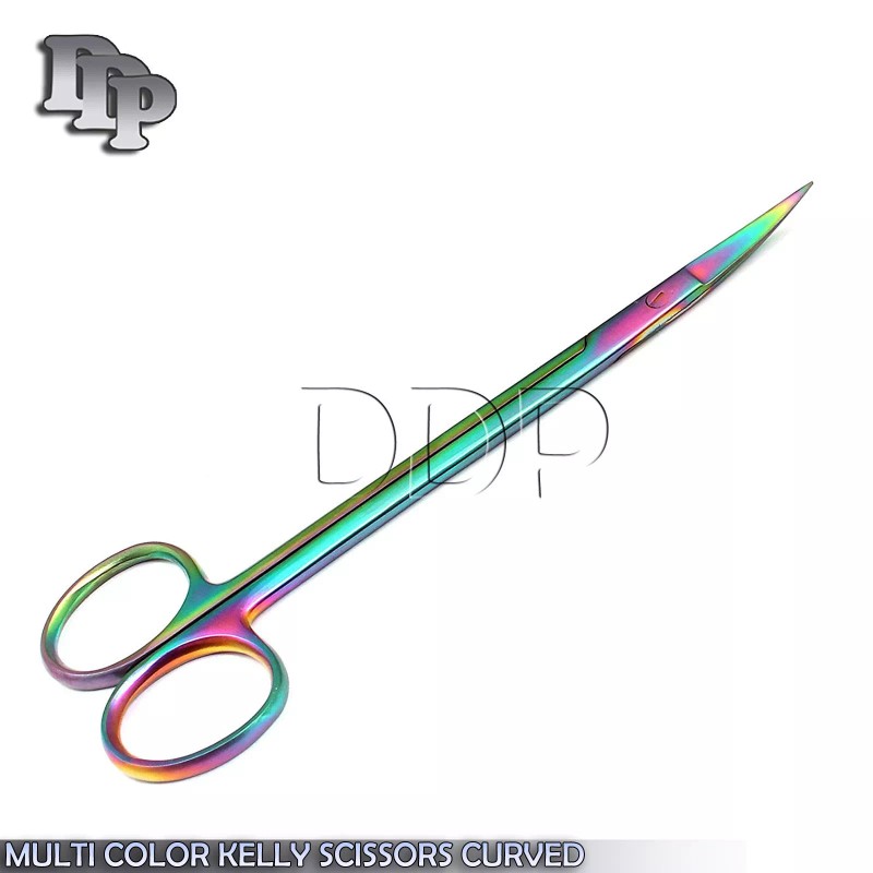 01 Piece Multi Titanium Color Rainbow Kelly Scissors 6.25" Curved Stainless Steel