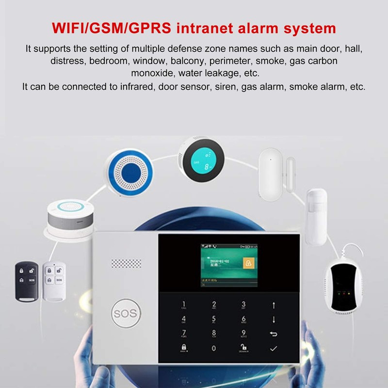 de Alarma Inteligente WiFi+gsm+GPRS Detector antirrobo TFT de 2,4 Pulgadas con botón SOS Sensor de Movimiento para Puertas y Ventanas para vigilancia del hogar