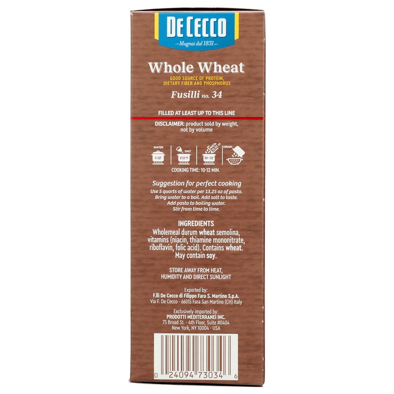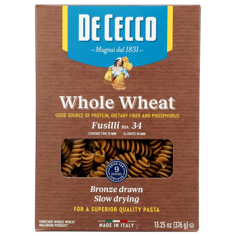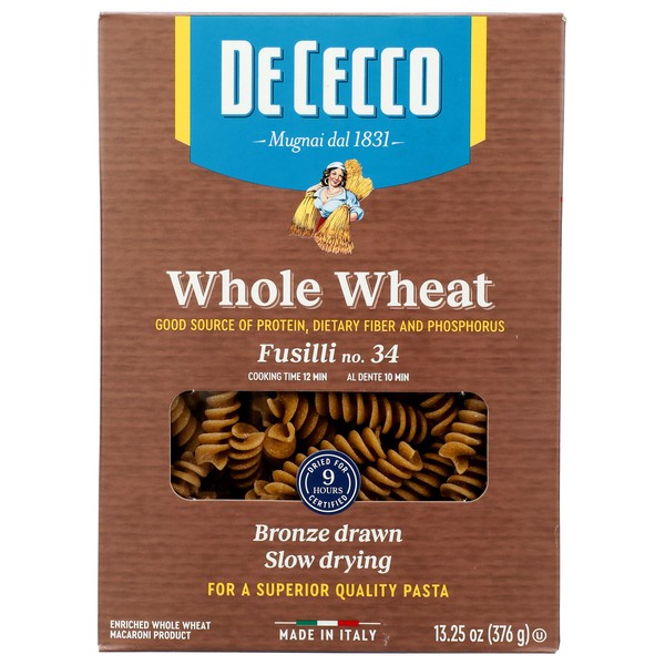 De Cecco Pasta Fusilli Whole Wheat Pasta, 13.25 oz