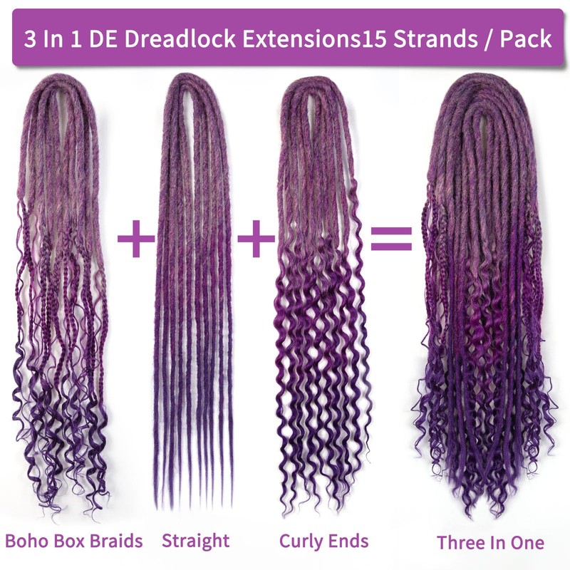 - Bohemian style Curly loose ends : The DE dreadlock extension is 24 inches, and we offer a variety of color options for the double end dreadlock extension to meet the individual needs of different customers. Whether you like classic colors or want to try a funky multicolor style, you can find the perfect match to suit your unique tastes
