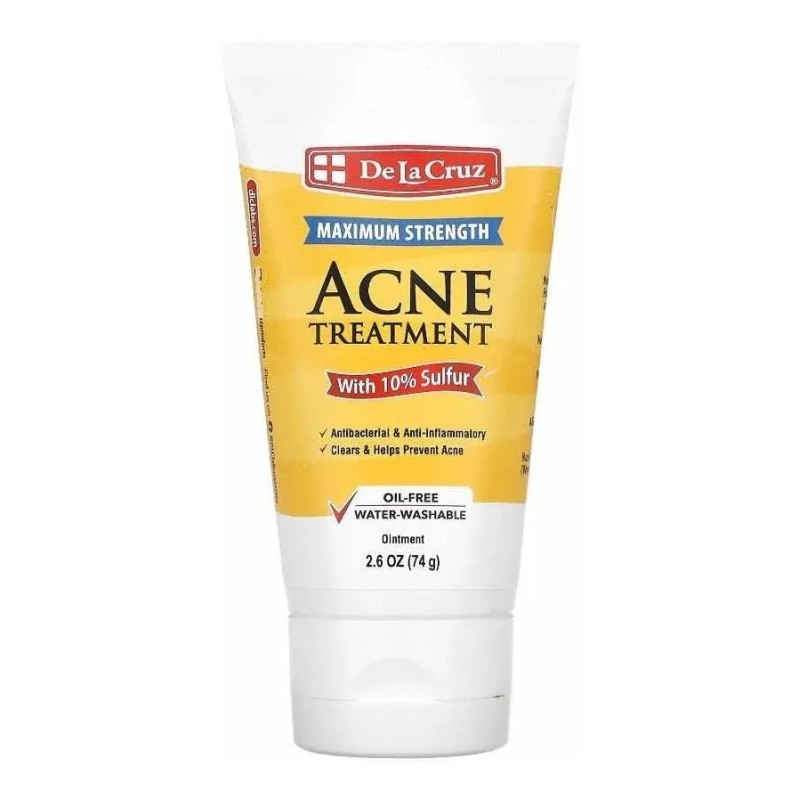 La De La Cruz Pomada Ungüento Anti-Acné con 10% de Azufre en un tubo de 6 gramos es un tratamiento tópico eficaz para el acné. Ayuda a secar el exceso de grasa, exfoliar y combatir las bacterias, reduciendo y previniendo brotes. Recuerda aplicarla sobre la piel limpia, de 1 a 3 veces al día, y usar protector solar ya que el azufre puede aumentar la sensibilidad al sol. Si persisten las dudas o la irritación, consulta a un dermatólogo.