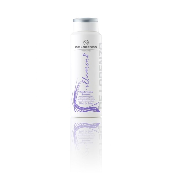 De Lorenzo Instant Illumin8 Blonde Toning Shampoo 375ml is a concentrated blue-violet pigment-infused formula that instantly cleanses and tones blonde and pre-lightened hair, neutralizing unwanted yellow tones while enhancing gloss and providing UV protection.