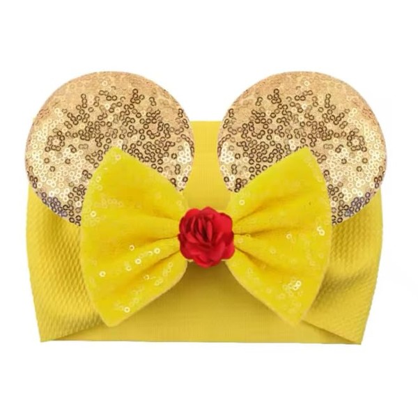 Transforma cualquier momento en una experiencia magica con estas hermosas bandas inspiradas en personajes de cuentos de hadas, diseñadas con orejas de ratón y decoradas con lentejuelas en tonos brillantes.