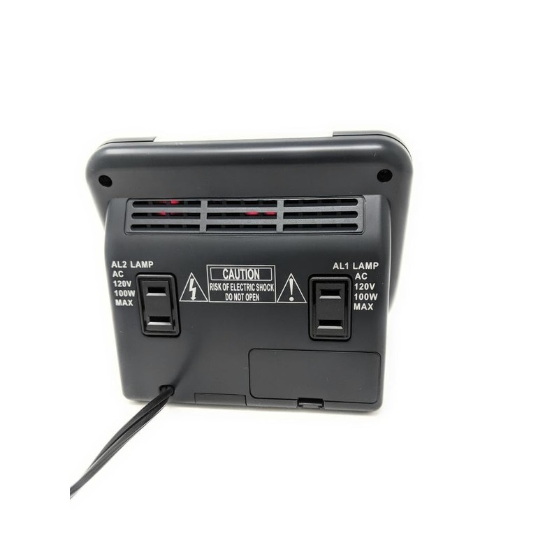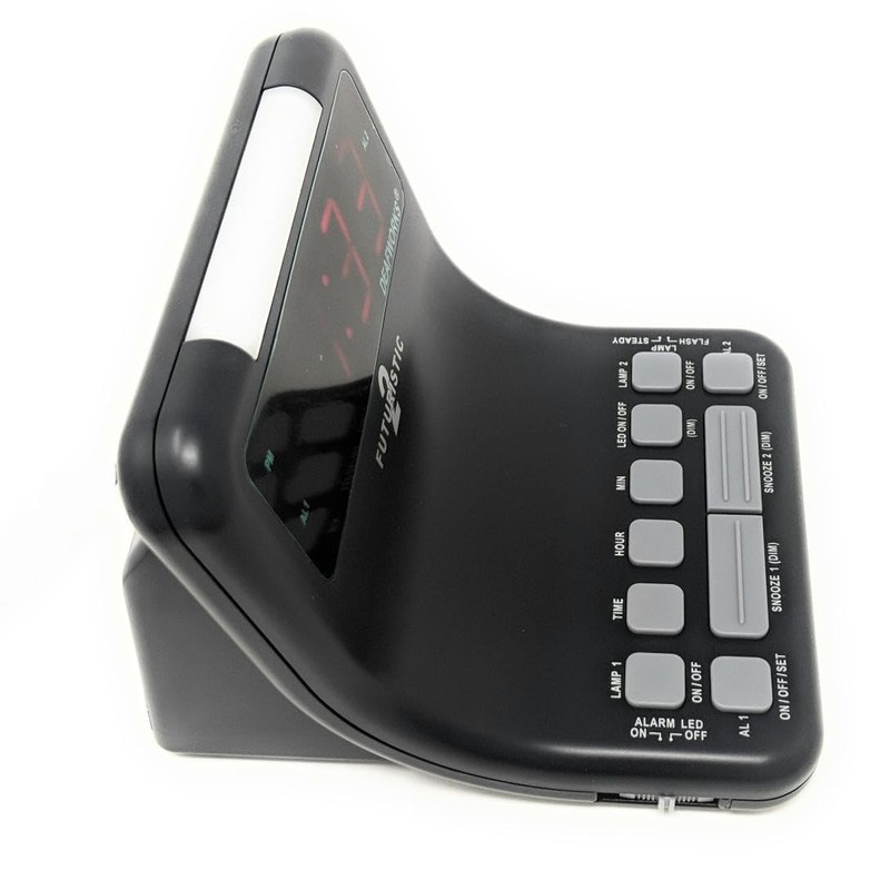 • DUAL FLASHING ALARMS. Not only can you set separate wake up times, but you can even have it flash different lamps for each person. Just because it's time for you to wake up doesn't mean your partner has to.
