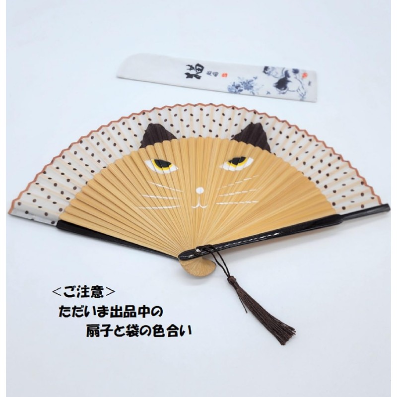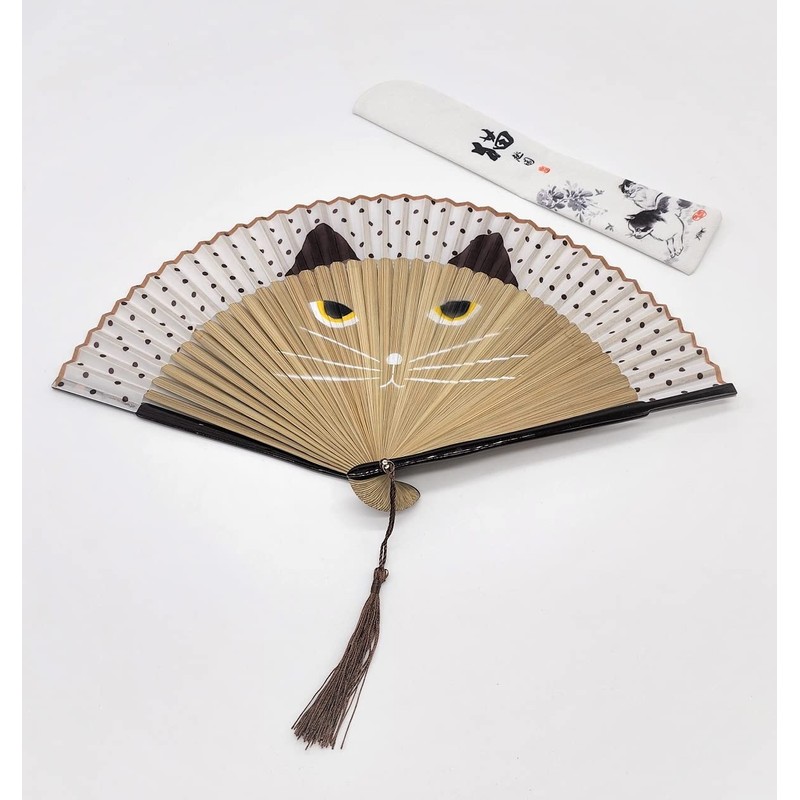 deaizaka.biz Women's Large Cat Face Folding Fan Pattern, Brown with Pouch, Braun
