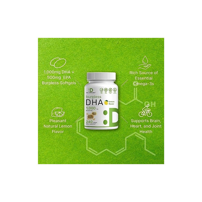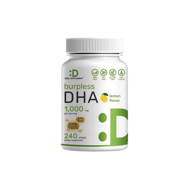 DEAL SUPPLEMENT DHA Supplements | 240 Softgels, Burpless, Lemon Flavor, DHA 1000mg + EPA 500mg, Wild Caught Fish