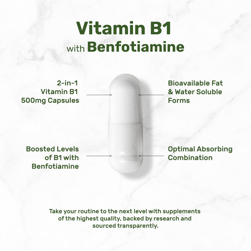 - 2-in-1 bioavailable vitamin B1 benfotiamine complex. Fat & water soluble forms. Premium thiamine mononitrate with S-Benzoylthiamine O-Monophosphate