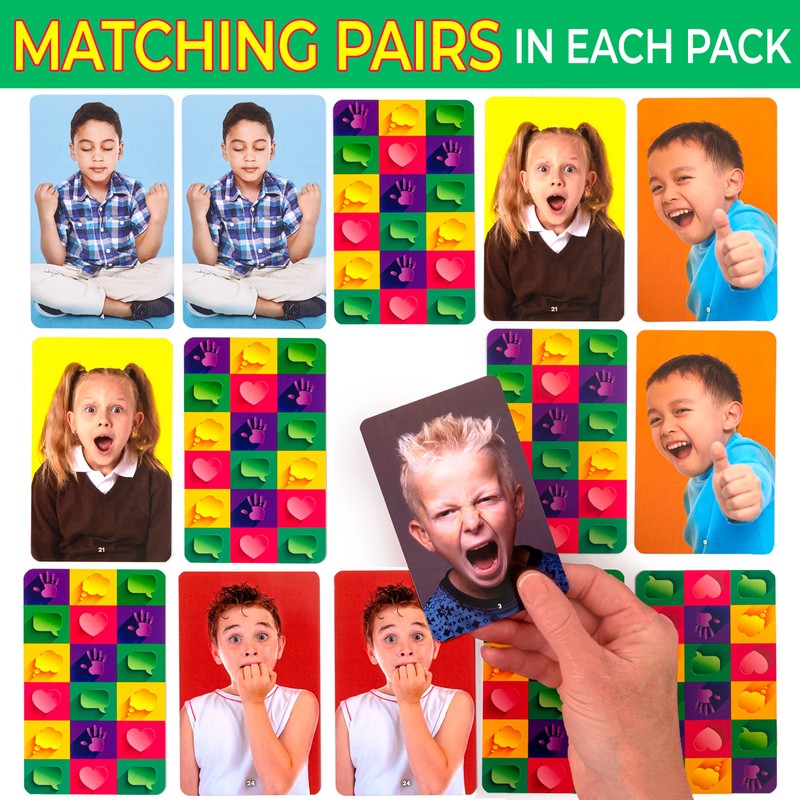 - DEVELOPS EMOTIONAL RECOGNITION SKILLS- Feelings flashcards can help children develop an emotional vocabulary as they learn about feelings in themselves and others. Real facial expressions are depicted rather than drawings or emoticons making the cards highly appealing to children.