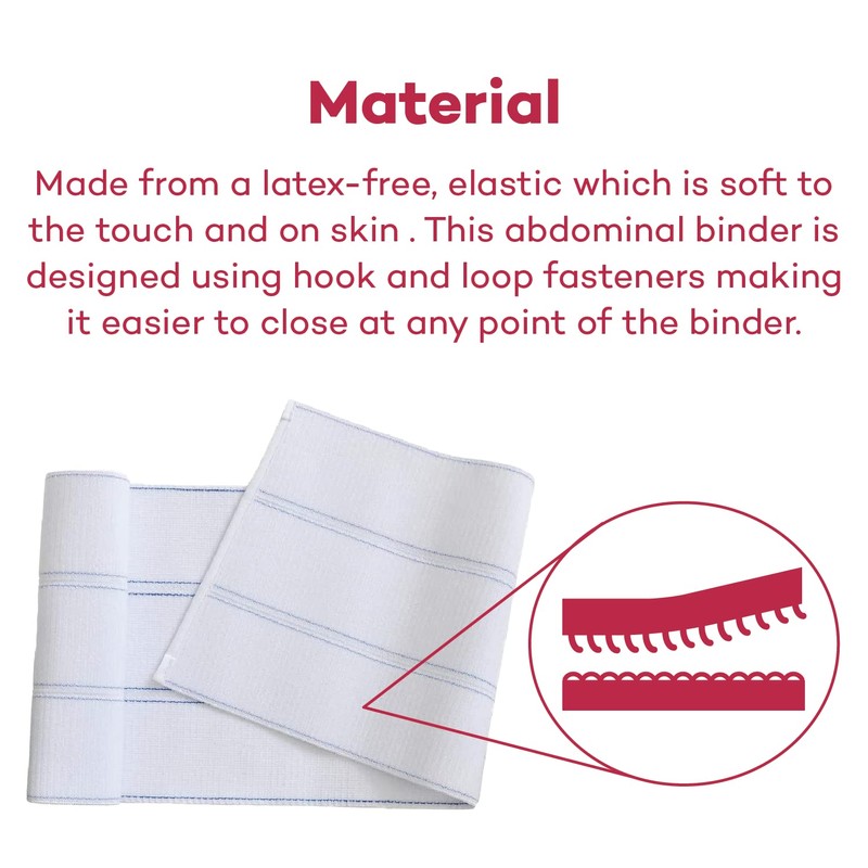 • Optimal Comfort – The latex- free, high-quality plush elastic is soft on the skin allowing for optimal comfort. It also permits a closure at any point on the circumference of the binder.