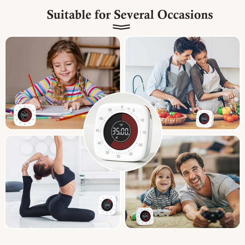 - Widely Used: the visual timers is ideal for classroom, home, kitchen, cooking, baking, learning or fitness and in the office, It is an excellent classroom timer, kids timer, pomodoro timer, desk timer, kitchen timer, cooking timer, timer clock, learning timer, time tracker, minute timer, egg timer, analog timer and much more