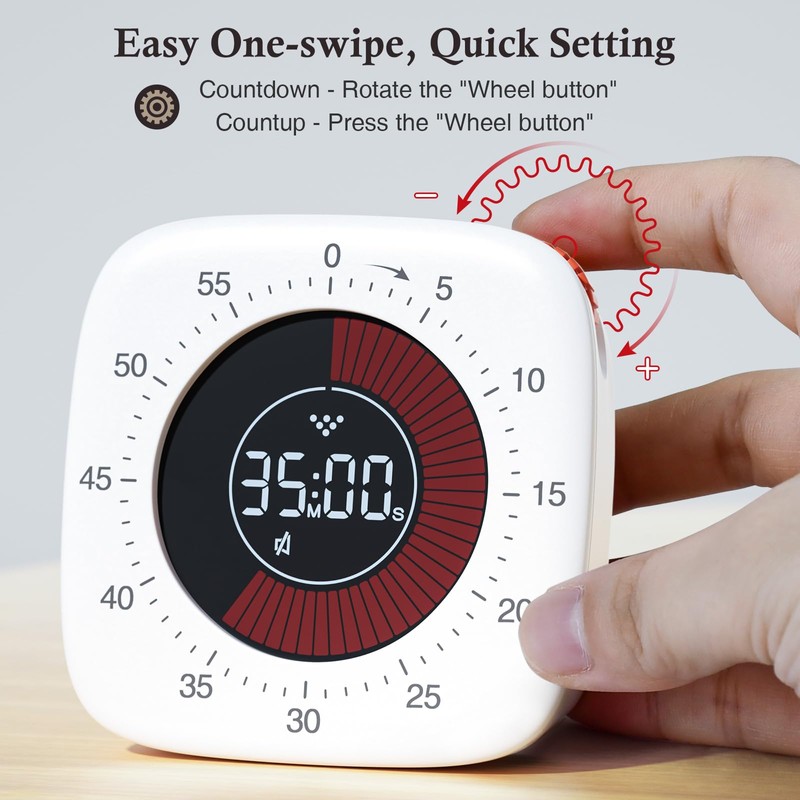 - 100% Silent Work & 4 Alarm Modes: Compared to mechanical or semi-mechanical timers, our digital timers have no annoying ticking noise, ideal for noise-sensitive environments, it will not disturb your studies and work. When time is up, 4 alarm modes are available: vibration, mute, low and loud, click the wheel to close the reminder