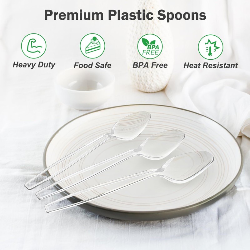 - 【Premium Material】: Dealusy clear plastic spoons disposable are made of food grade polystyrene, total BPA free and toxin free for your healthy meals.