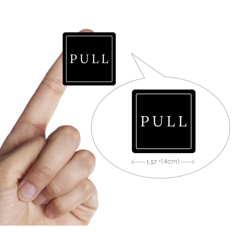 • Each sticker measures 4x4 cm (approximately 1.57x1.57 inches). Every sheet contains 2 sets of 'PULL' and 'PUSH' stickers, with a total of 4 sheets in each pack.