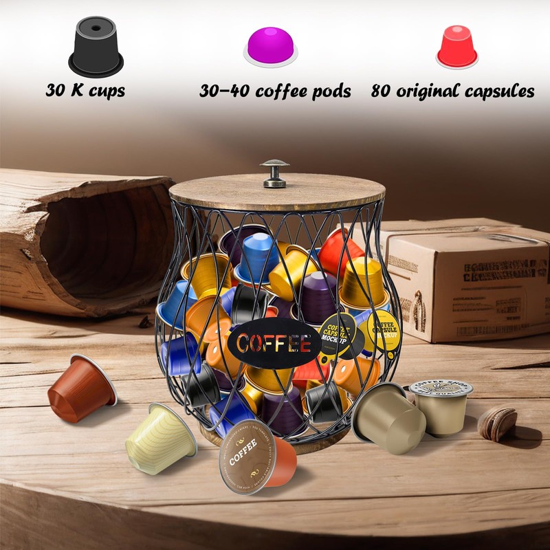 - High Practical Performance: This coffee pods storage is made of sturdy metal material, durable, this coffee caddy has a wide opening, it is very convenient for you to quickly access the coffee capsules or other items inside