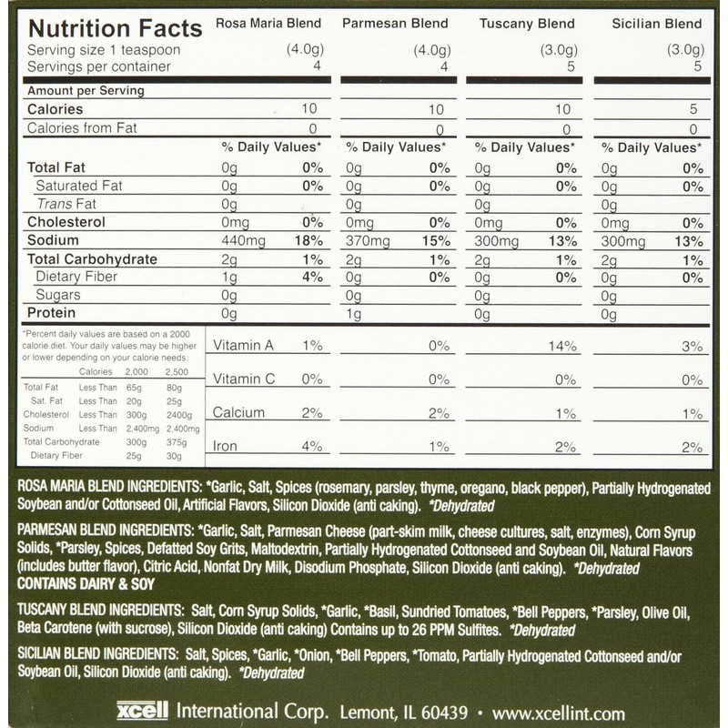 - 4 Dipping Seasonings in one convenient 2.4 oz. jar offers a delectable selection of Sicilian, Tuscany, Parmesan, and Rosa Maria blends
