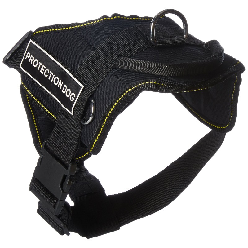 Dean & Tyler Fun Works Protection Dog Harness with Padded Chest Piece, Medium, Fits Girth Size: 28-Inch to 34-Inch, Black with Yellow Trim