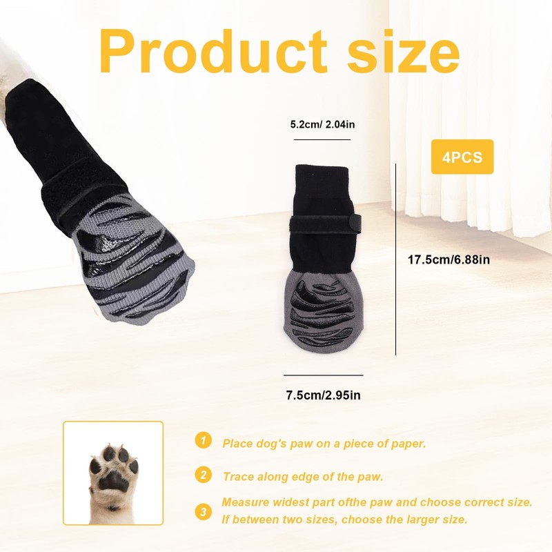 - Easy to adjust: dog socks are equipped with 4 pieces of adhesive tape, which can be easily adjusted and removed. It can not only adjust the tightness according to the size of your pet's feet, but also prevent the socks from falling off