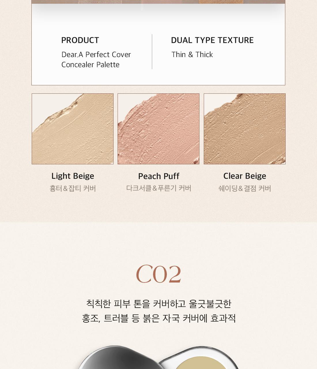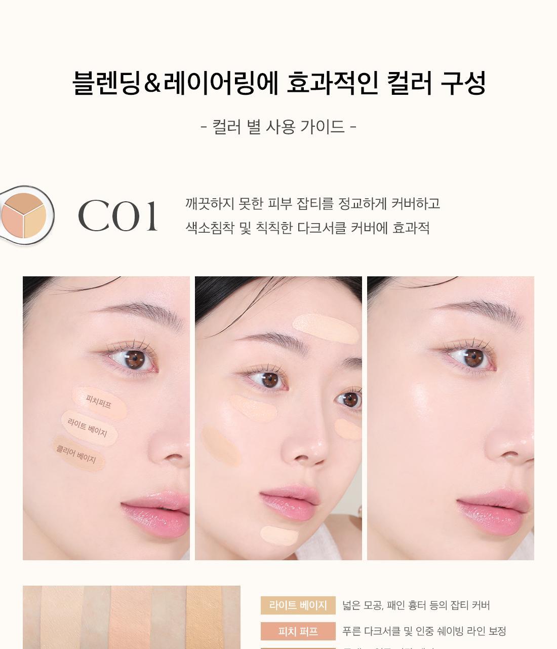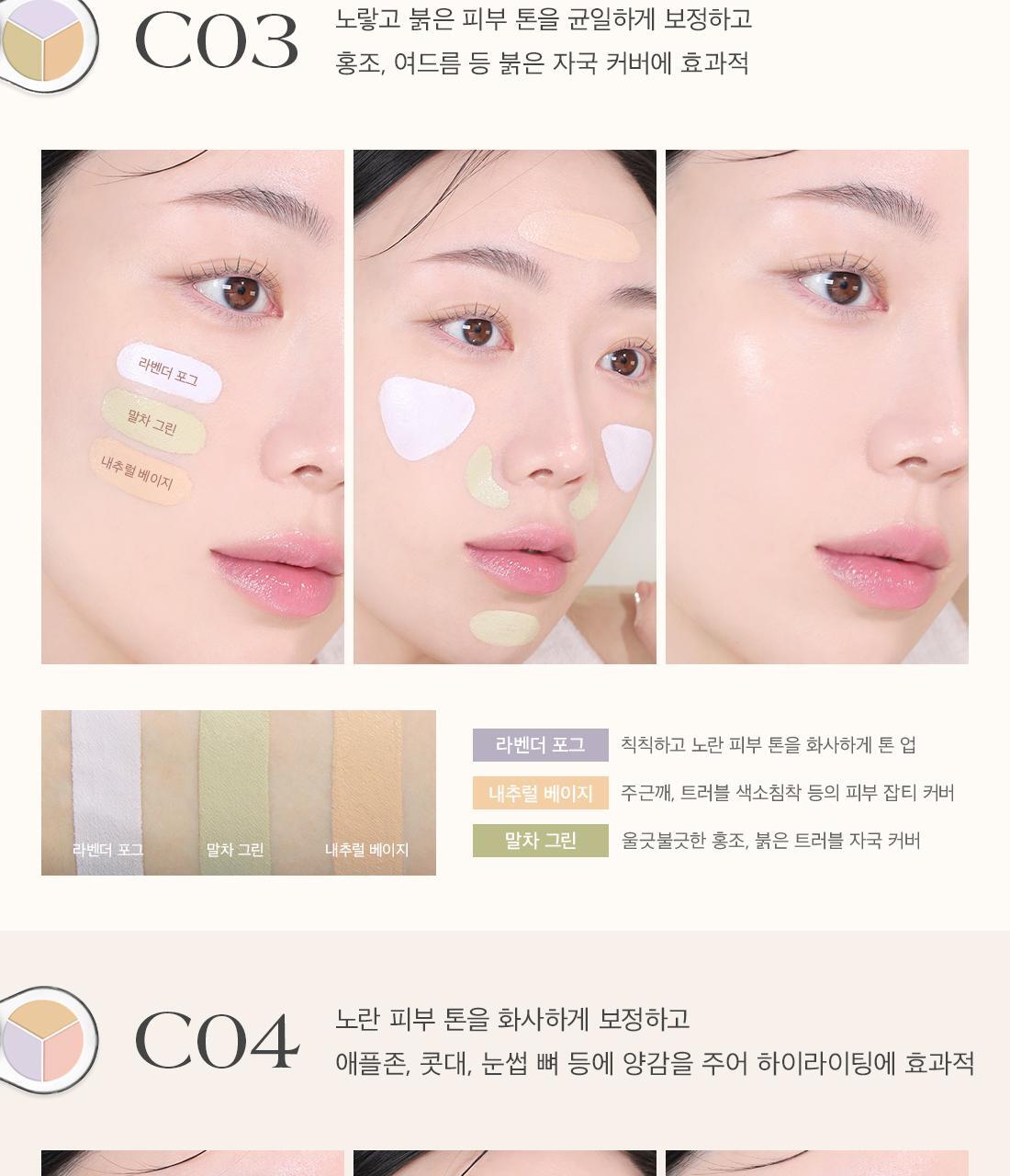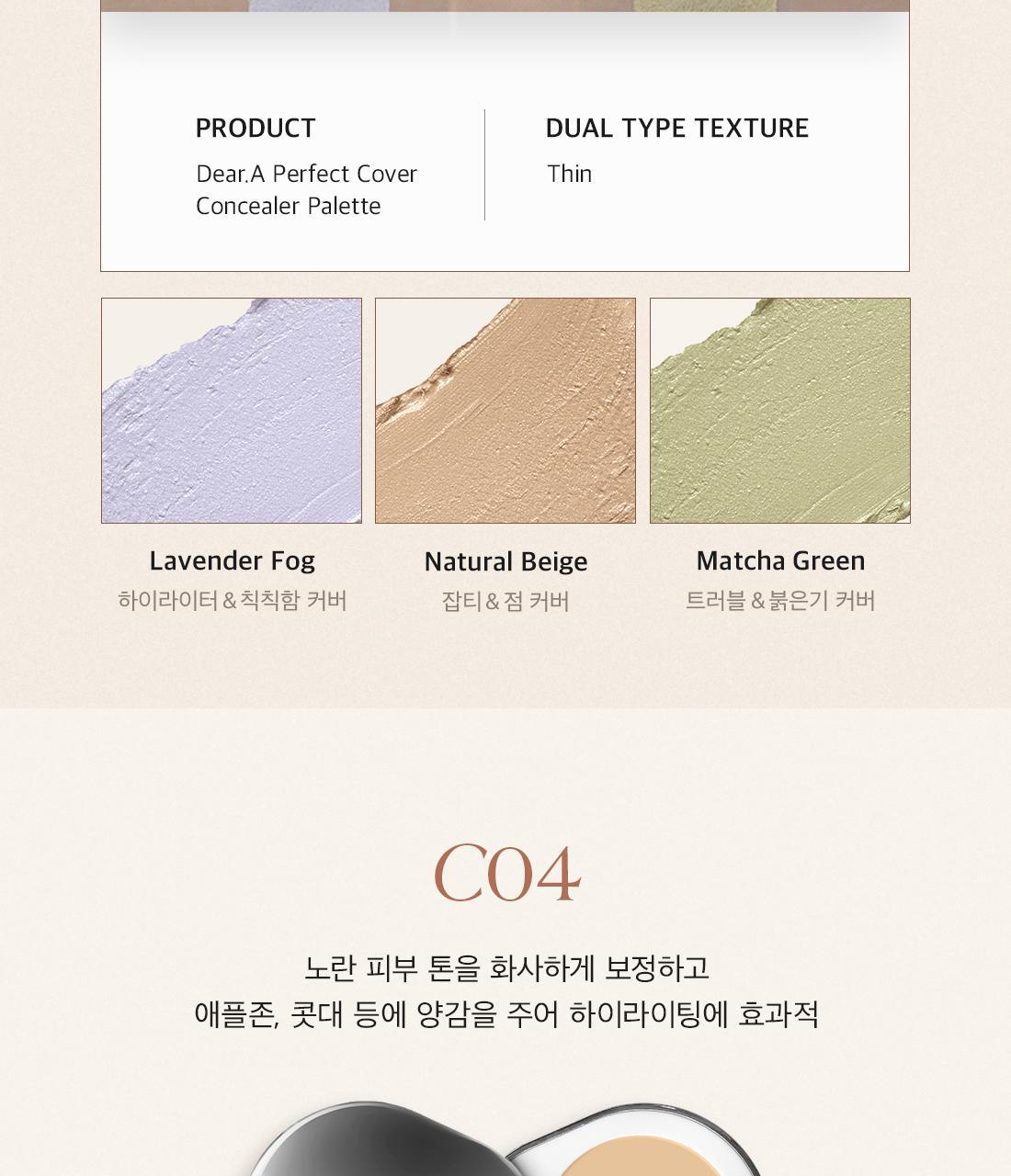 The number one concealer at Olive Young. It provides a creamy application and a silky cover after application. It is a 3-in-1 multi-vegan concealer suitable for sensitive skin. It is a concealer palette that covers flaws seamlessly without clumping, providing highlighting, contouring, and coverage. Provides a smooth and adhesive cover without dryness or clumping. Optimized for covering skin imperfections and correcting with two types of textures. It includes a built-in finger puff for finishing touches without clumping. Suitable for those with dark circles, uneven skin tone caused by blemishes, those who want to cover without clumping or creasing even on a modified makeup, those who want to solve everything from tone correction to contour makeup with just one concealer, those who need a concealer that can be used without worrying about sensitive skin.