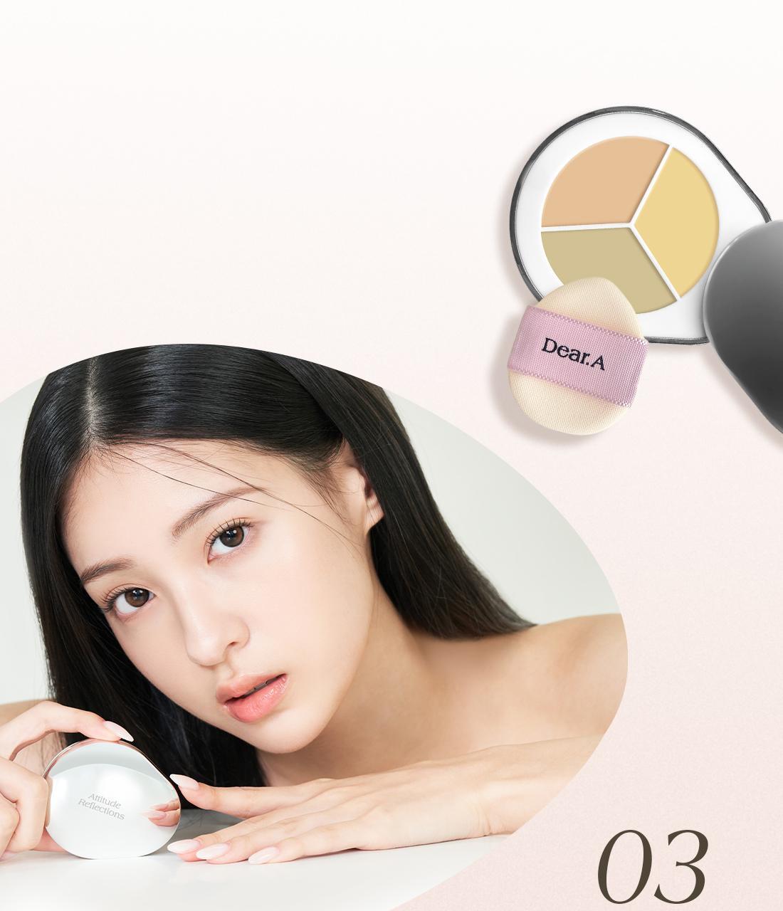 Dear.A Perfect Cover Concealer Palette Set (+Puff) 3 Colors - C01 (+Finger Puff & Brush Set)
