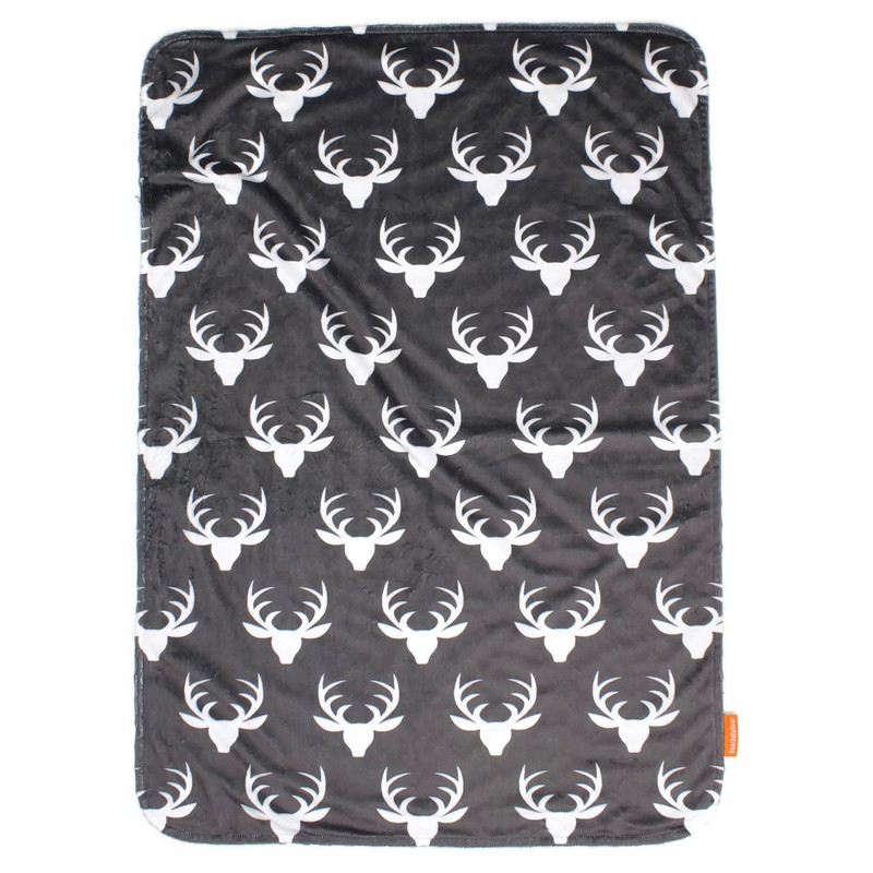 Dear Baby Gear Deluxe Baby Blankets, Custom Minky Print Double Layer, Deer Antlers, Grey Minky Dot, 38 Inches by 29 Inches