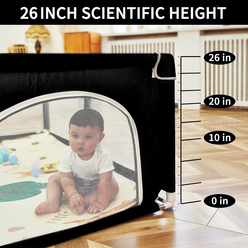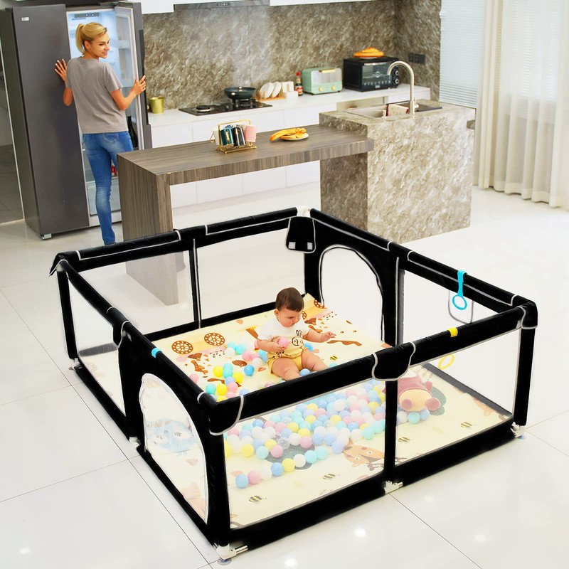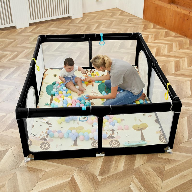 DEAR LOV 71"x59" Extra Large Baby Playpen with Safety Gate & Activity Center - Soft Mesh Playard for Infants 0-12 Months (Black)