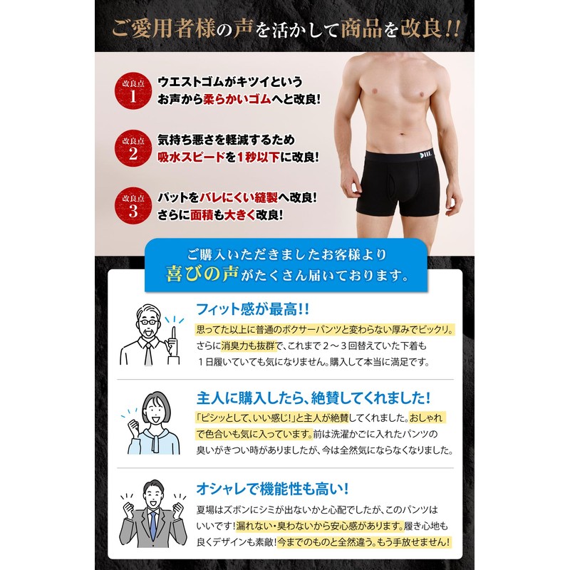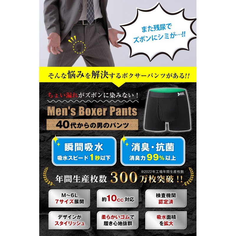 - (A little leakage won't stain your pants! Are you having such urine problems? Dear Mr. men's boxer shorts solve the problems that you can stain your pants with residual urine, worry about stuffiness or smells, and even coughing and crushing will leak in. Water absorption speed of less than 1 second, it absorbs a little leakage or chasing leaks. In addition, it has a deodorizing power of over 99% and is deodorizing and antibacterial. Large water absorption area eliminates the worry of lateral leaks in position