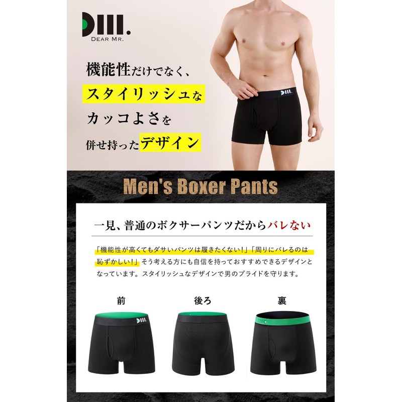 - [Product Details] Brand Name: Dear Mr. ◆ Uses: Men’s urine stain prevention pants, functional pants (pants that do not cause incontinence to return to approximately 0.4 fl oz (10 cc) of residual urine return to the pants) [About return and exchange] Due to the nature of the underwear, even if the product received is unused, we cannot accept returns or exchanges due to the customer's convenience. [Aftermarket Support] In the event that the product has an initial defective product, we will respond quickly. Also, if you have any questions or concerns, please feel free to contact us by email or LINE