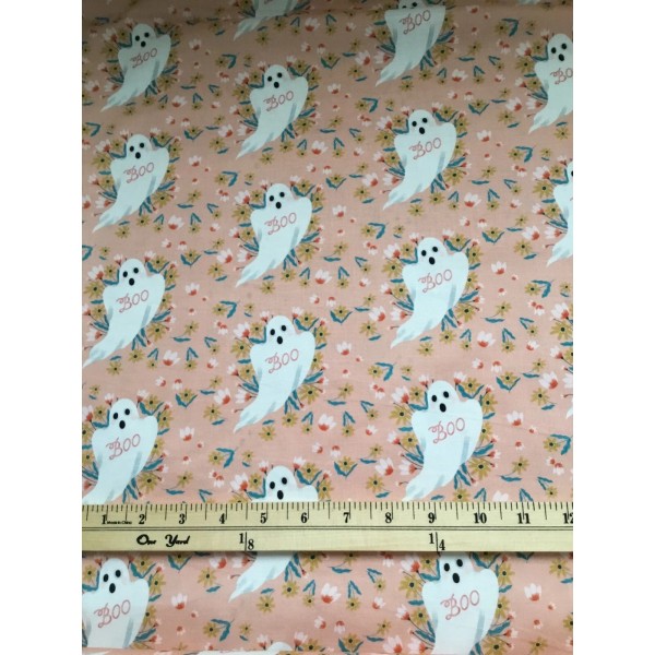 Dear Stella Cotton Fabric BOO - Pat# DFG2460 on Papaya Background by the 1/2 yd