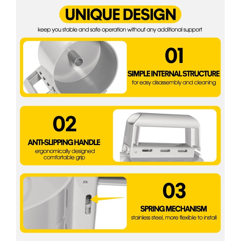 - UNIQUE DESIGN - Simple internal structure for easy disassembly and cleaning. Ergonomically designed handle for comfortable grip and non-slipping. The 112204S Cutter Bowl is featured with a robust stainless steel spring mechanism, making installation more flexible, keeping you stable and safe operation without any additional support