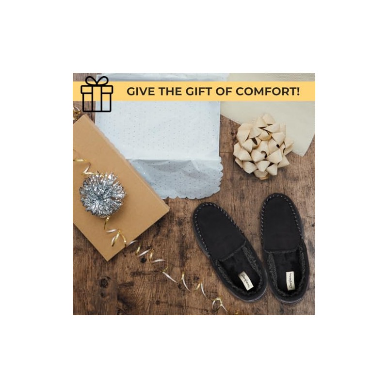 • NO SWEAT COMFORT: Say goodbye to sweaty feet! Our Keaton mens moccasin slippers feature innovative DF Adapt technology that actively regulates temperature, preventing moisture buildup and keeping your feet cool and dry from morning to night.