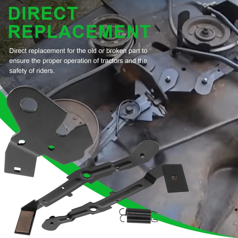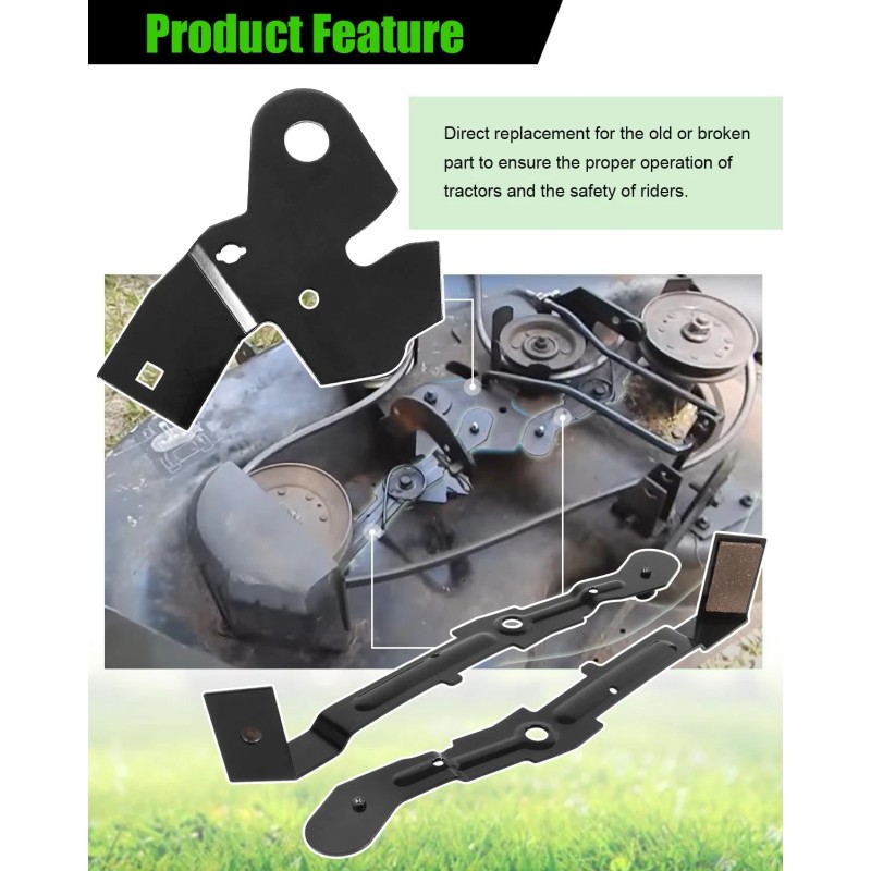 【Feature】This arm bracket roller cam kit can directly replace the old or broken part to ensure the brake operates properly and keep the rider safe. The idler arm let the blades disengage like they are supposed to. The brake arm puts pressure on the pulley to stop the blades from spinning when the blades are disengaged. The springs pull blade brake to mandrel pulley while disengaging the deck to stop the blades.