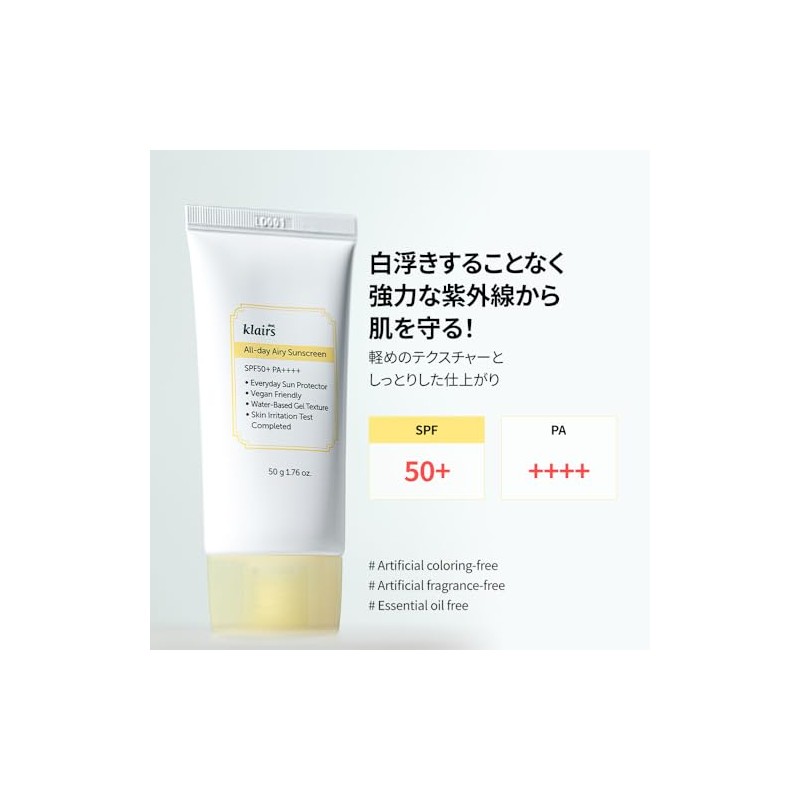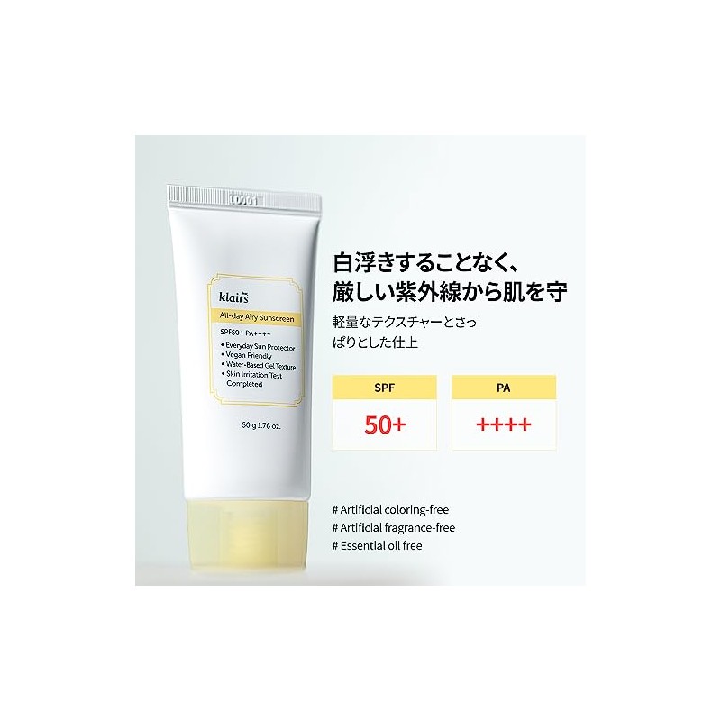 DearKlairs [DearKlairs] All Day Airy Sunscreen SPF 50+ PA+++++, No White Cast, Essential Oil-Free, Non-Sticky, Non-Comedogenic, Easy to Wash, No Eye Irritation