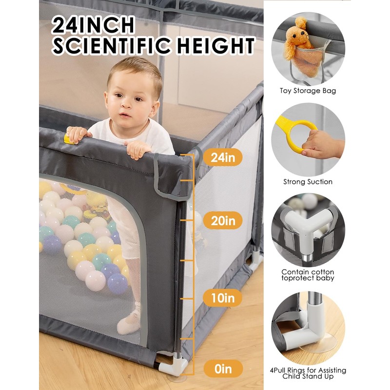- Baby’s fantastic play world: our dearlomum baby playpen for toddlers, The height of the fence is about 26 inches, which helps the baby to standing,walking and playing easily.Also makes a great ball pit for toddlers!